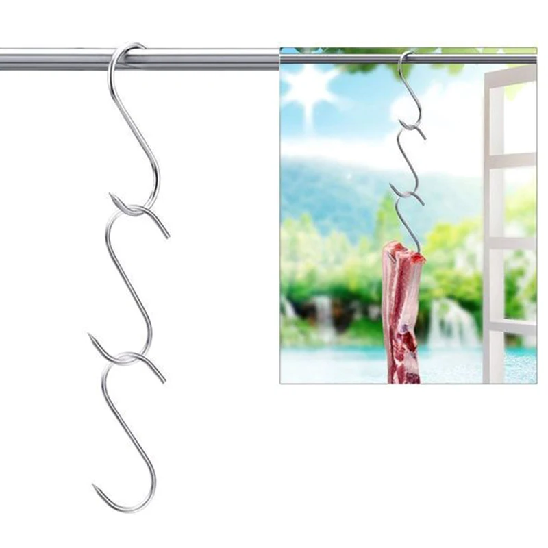 kf S50c98125e70d4de9bb918787bbb03007YStainless Steel S-Shaped Meat Hooks (20 Pack) – Heavy Duty Butchering, Smoking & BBQ Tools