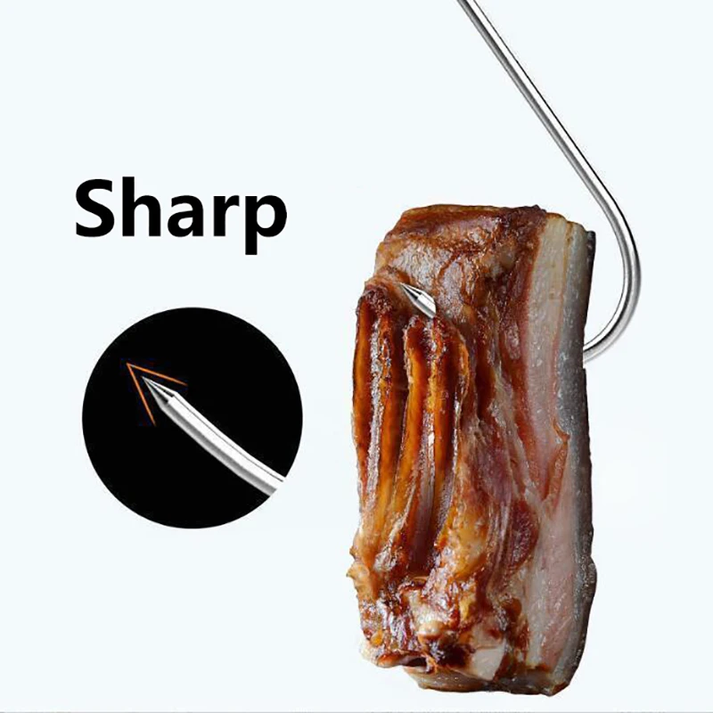 Crafted from food-grade stainless steel, each hook is rust-resistant, sturdy, and reusable, ensuring safe and sanitary meat handling every time. The S-shape provides secure hanging on racks, smokers, or grills, while the sharp ends easily pierce and hold meat in place. Ideal for butchering, meat processing, and outdoor cooking.