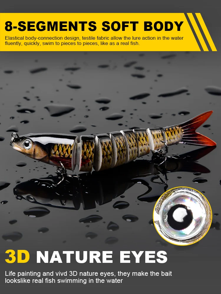 - 🎣 Realistic Swimming Action – 8-segment body design creates lifelike movement
