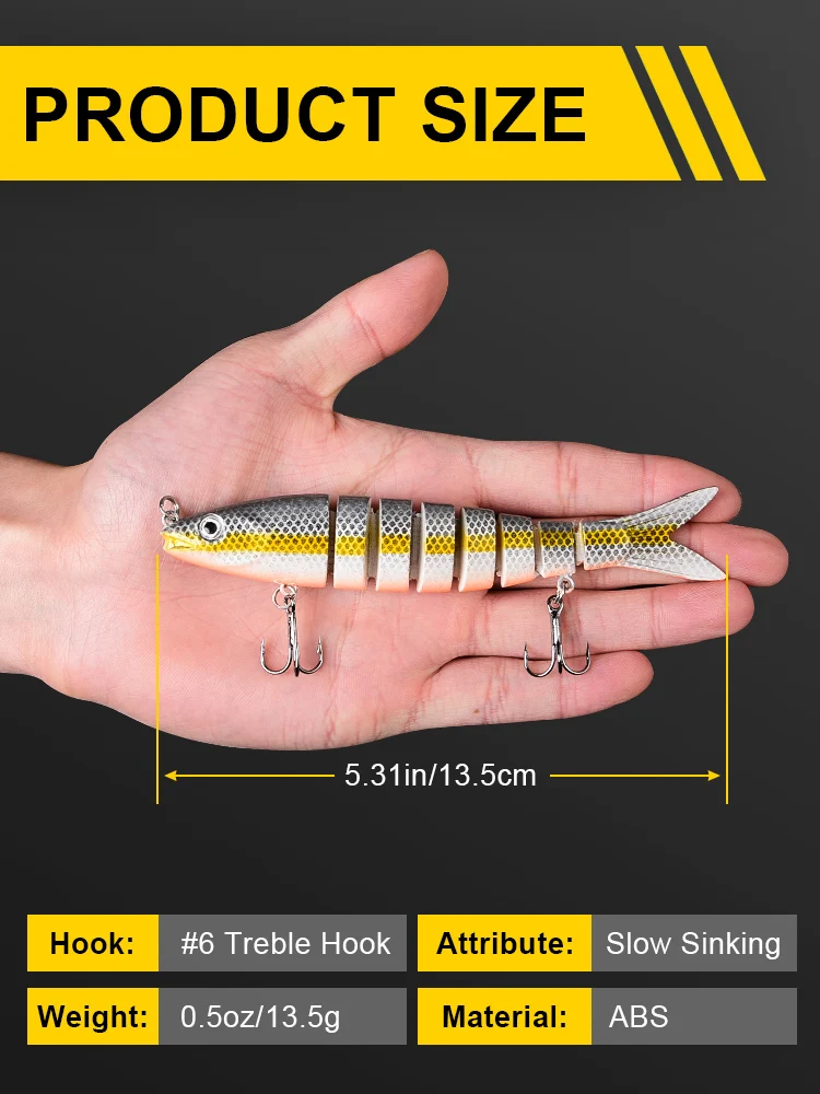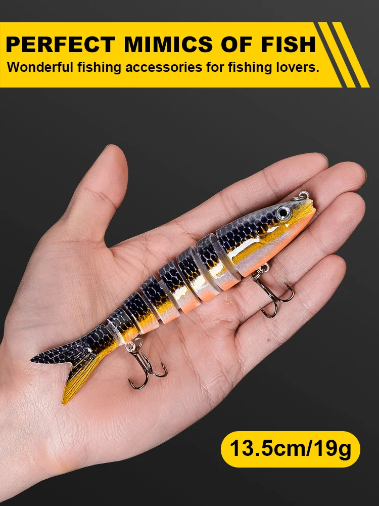 Catch more trophy fish with the 3PCS Multi-Jointed Swimbaits, designed to perfectly mimic the natural swimming motion of real baitfish. Each lure measures 13.5cm and weighs 19g, with an 8-segment body that delivers smooth, lifelike movements to trigger strikes from predatory fish.