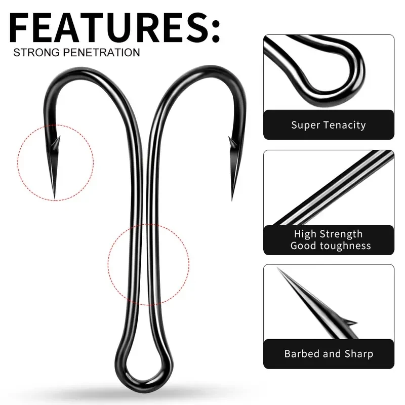 - Value Pack (50PCS) – Includes a bulk set of 50 double hooks for multiple fishing trips.