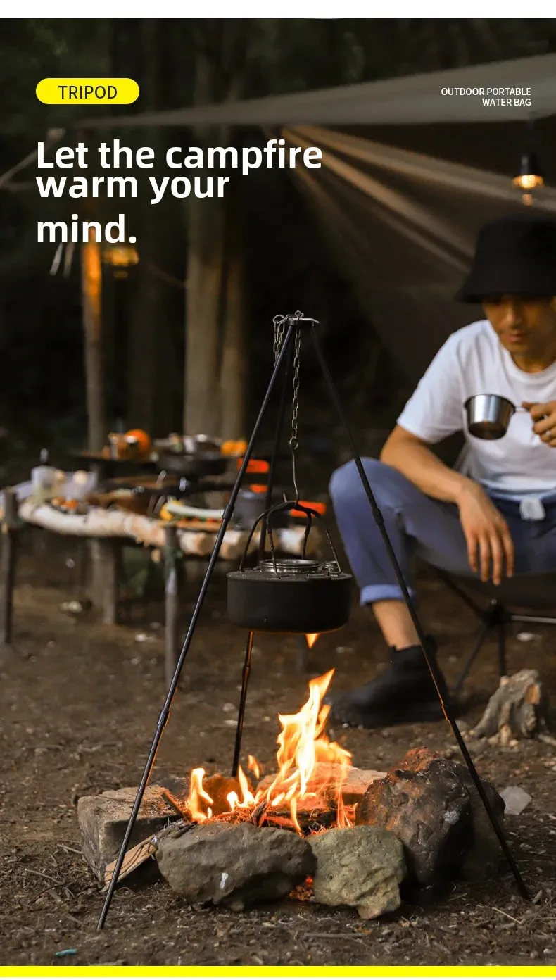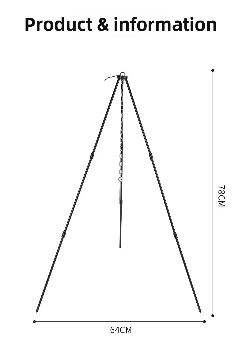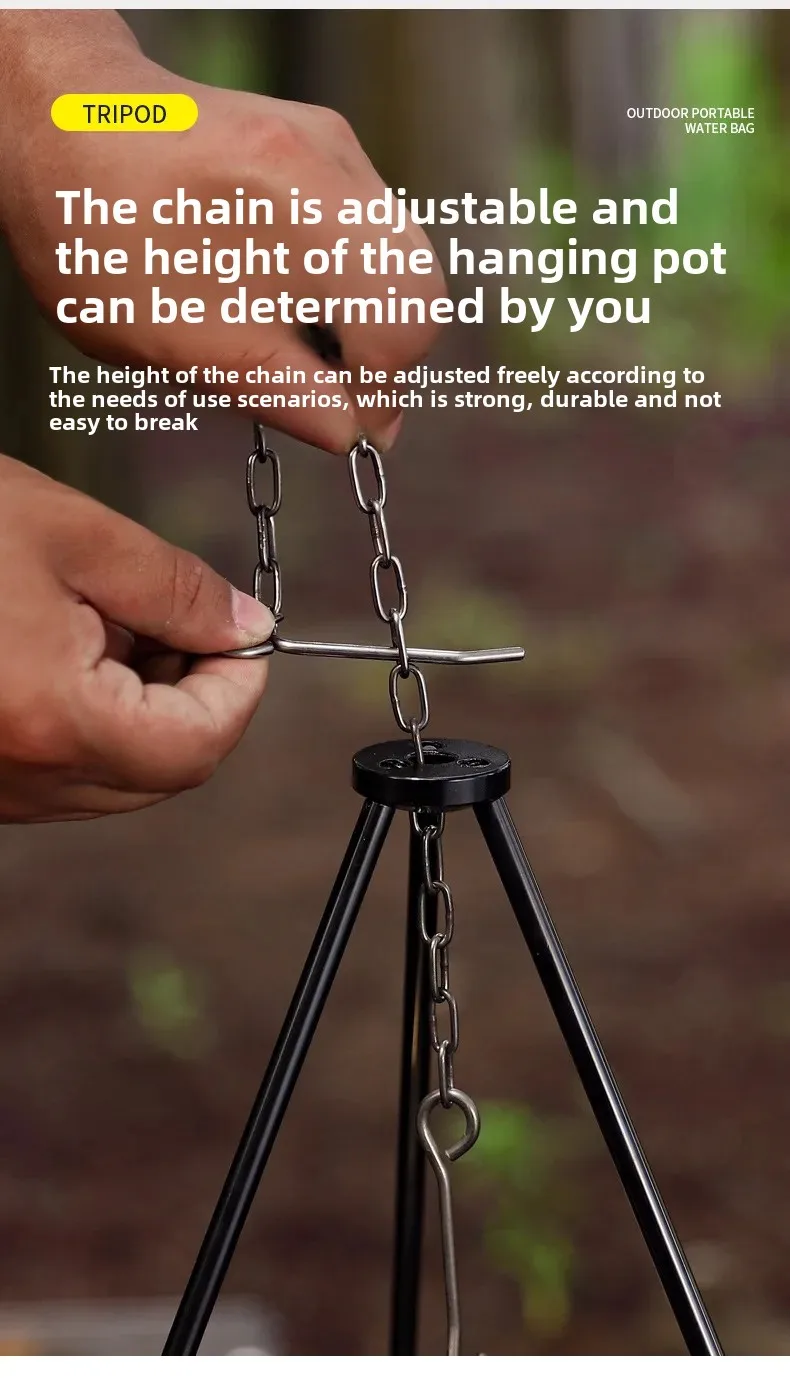 The three-legged design delivers excellent stability, so you can safely suspend your cooking pots above the fire. No need for complicated assembly or bulky gear—just pop it open and adjust the height as needed for boiling water, simmering stews, or making your favorite campfire meals. Its compact design folds down small, making it easy to pack into your camping kit, backpack, or picnic bag without adding unnecessary weight.