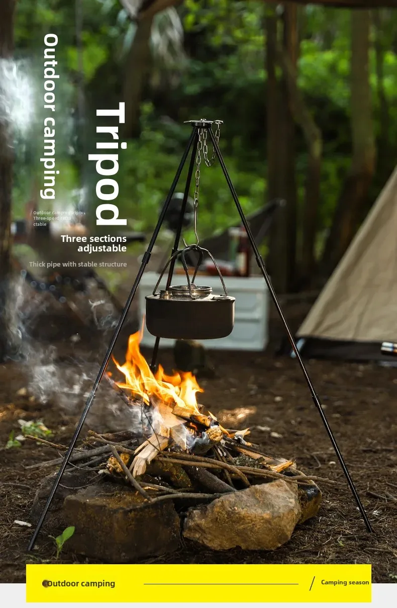 Aluminum Alloy Tripod Fire Pit Stand – Camping Stove & Hanging Pot Rack for Outdoor Cooking