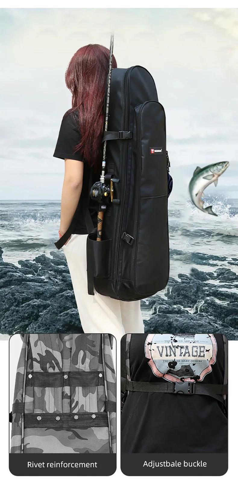 With multiple compartments, adjustable straps, and reinforced stitching, this pack offers easy access to gear while keeping everything secure and protected. The spacious main compartment holds tackle boxes, bait, and larger items, while the dedicated rod holders and side pockets keep your rods, pliers, and accessories within reach. The water-resistant materials ensure your gear stays dry, even in wet weather or near splash zones.