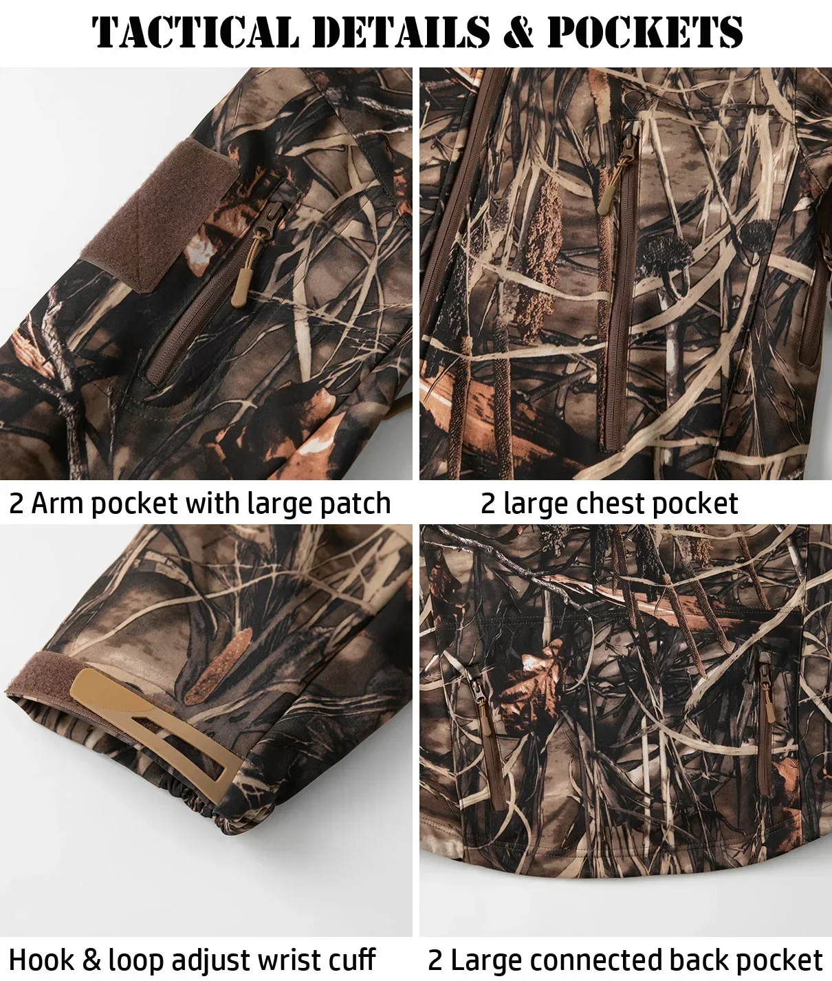 Men’s Camouflage Hunting Jacket – Soft Shell Waterproof Outdoor Coat with Fleece Lining & Hood