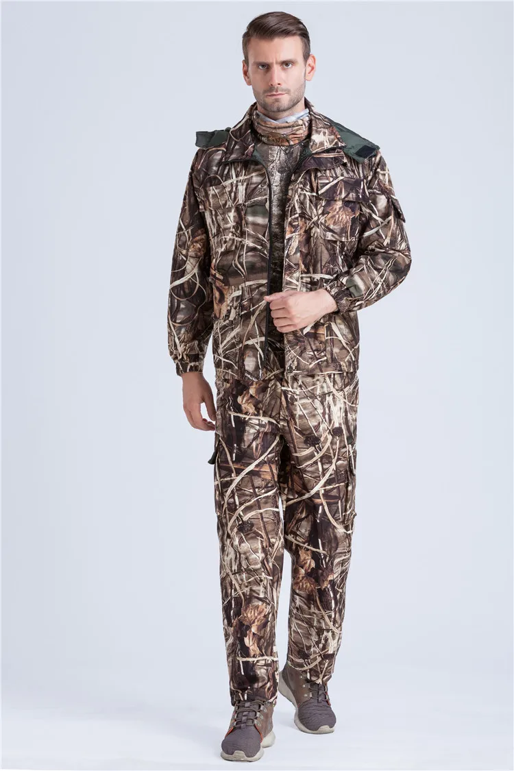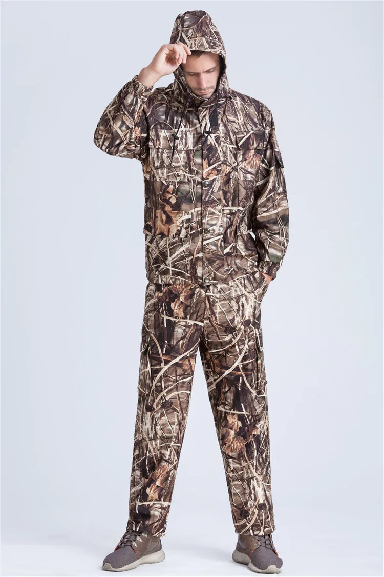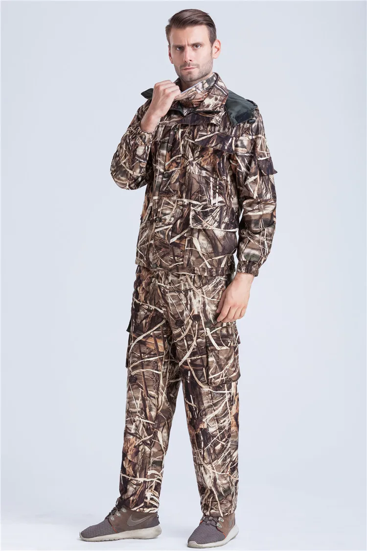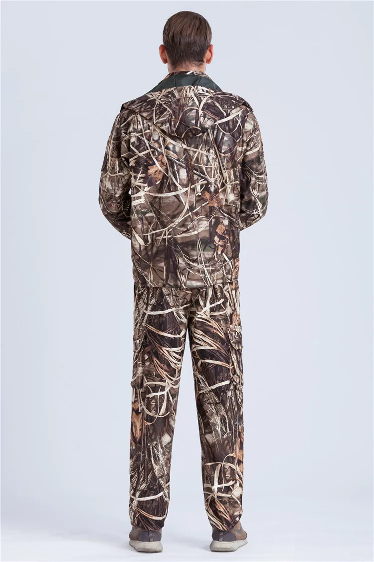 Outdoor Autumn Camouflage Hunting Fishing Hooded Jacket Pants Wind Waterproof Reed Camo Suit