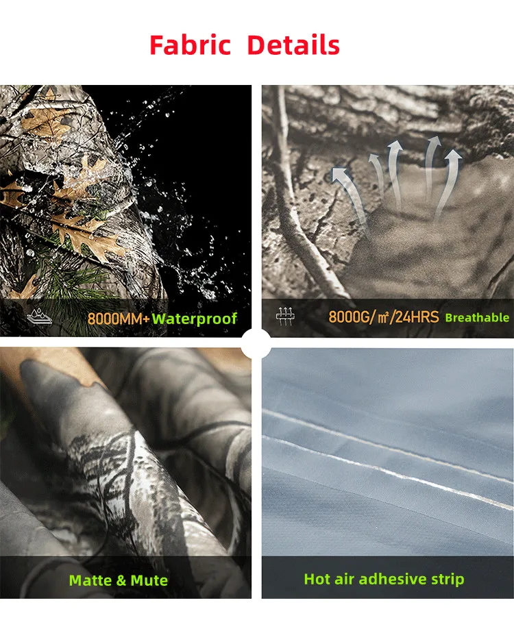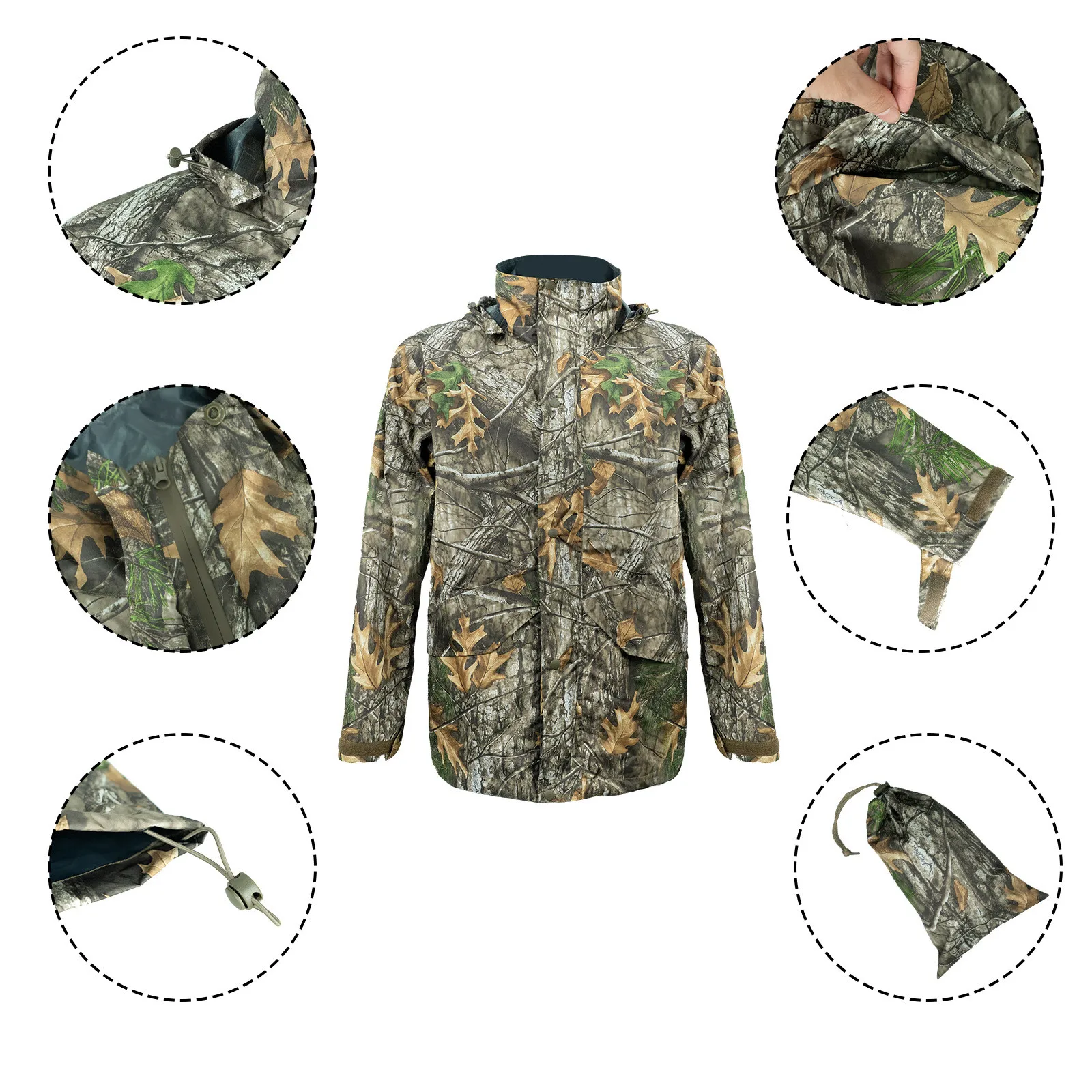 The tree bionic camouflage pattern blends naturally into forested and bush environments, keeping you hidden while stalking game or setting up camp. Constructed from durable, waterproof, and quick-drying fabric, it provides reliable protection from heavy rain while remaining breathable enough for long wear in the field.