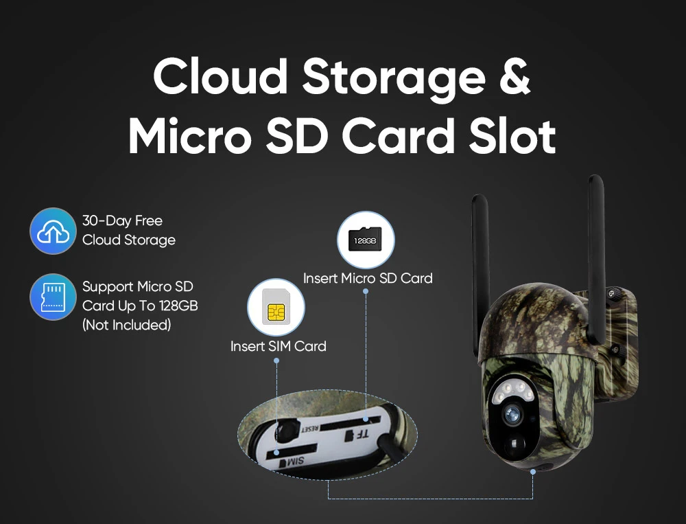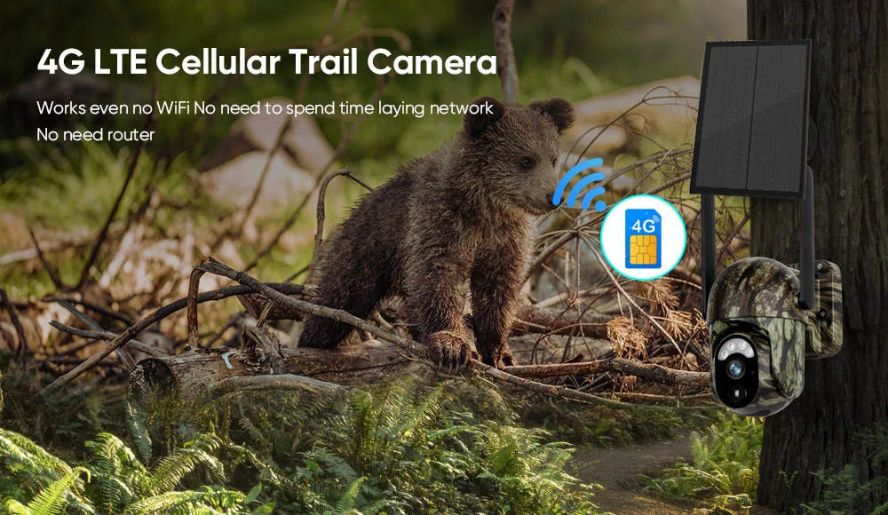 Equipped with a high-efficiency solar panel and backup battery support, this camera provides reliable year-round operation without frequent maintenance. Built with weatherproof housing, it stands up to rain, snow, and harsh outdoor conditions, making it perfect for hunting, forest observation, farm monitoring, construction sites, or property security.