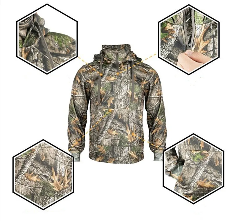 Winter Fishing Windproof Fleece Hoodie – Camouflage Hunting Jacket with Thick Fleece Lining